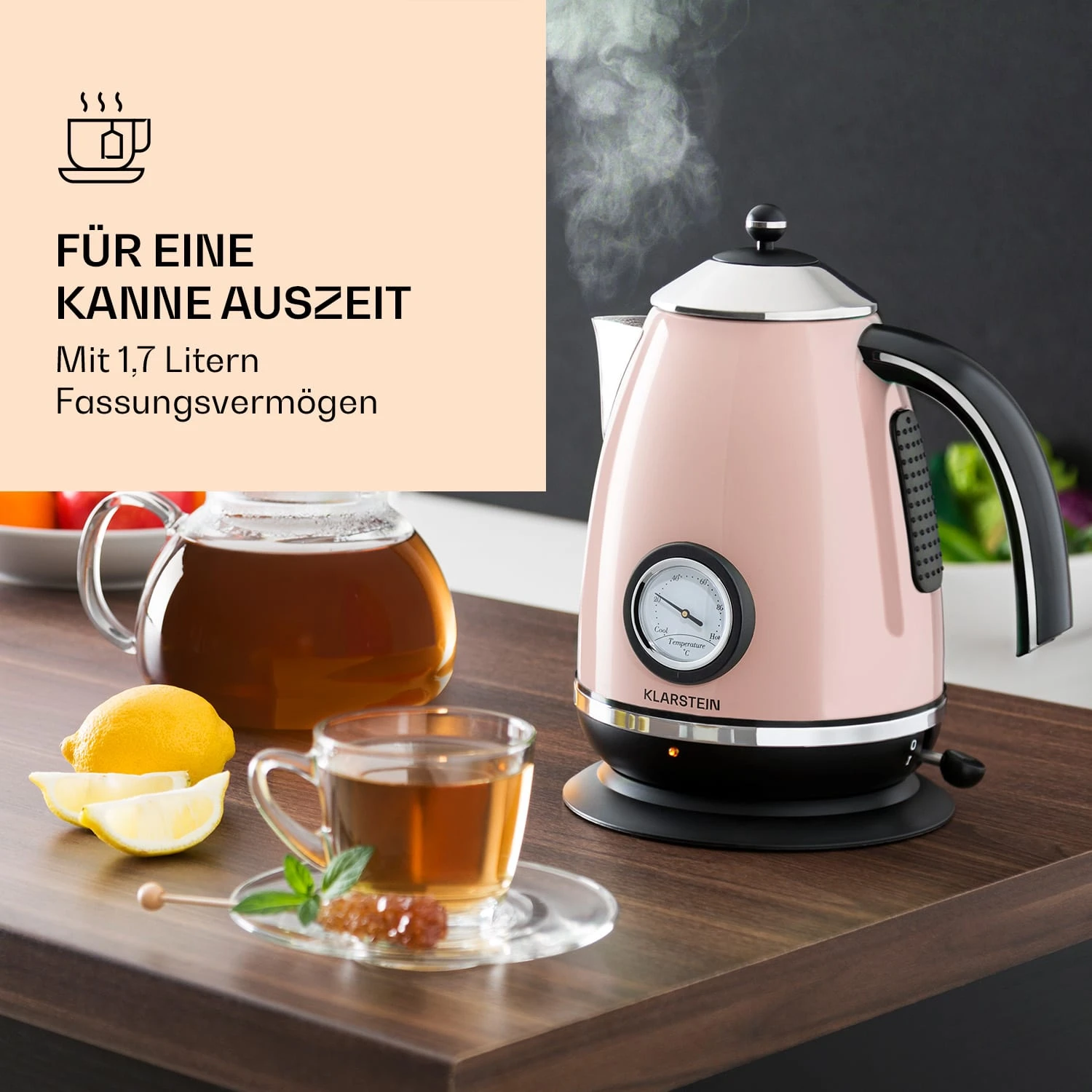 Das Gehäuse des Klarstein Aquavita Chalet Wasserkochers ist komplett aus rostfreiem Edelstahl gefertigt und orientiert sich in moderner Form am klassischen Teekessel-Design seiner funktionellen Urahnen. Seine geringe Stellfläche ermöglicht die Aufstellung in nahezu jeder Küchenzeile.