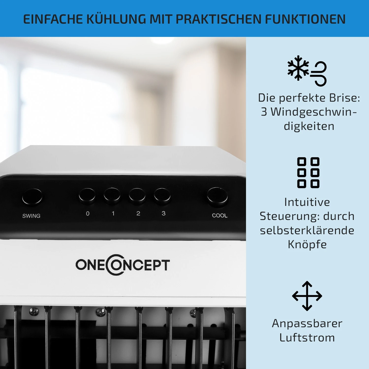 Carribean Blue 3-in-1 Luftkühler 402 M3/h 70 W 4 Ltr Oszillation Mobil