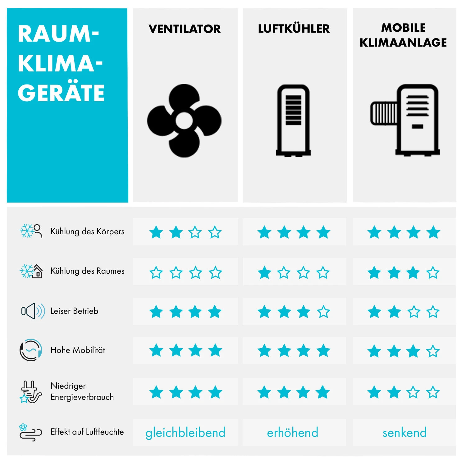 Carribean Blue 3-in-1 Luftkühler Ventilator Luftbefeuchter 402 M3/h | 70 Watt | 4 Liter | 3 Geschwindigkeiten | Oszillation | Mobil