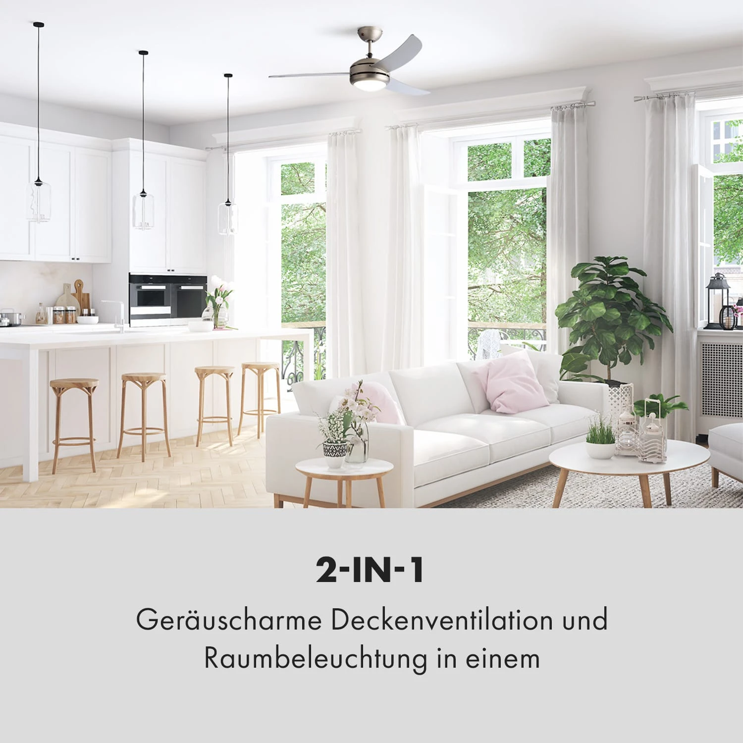 Eine Extrarunde für Ihre Vorlieben: Der Klarstein El Paso Deckenventilator mit Deckenbeleuchtung versorgt dich und deine Lieben je nach Bedarf mit einer frischen Brise oder wärmender Luftzirkulation.