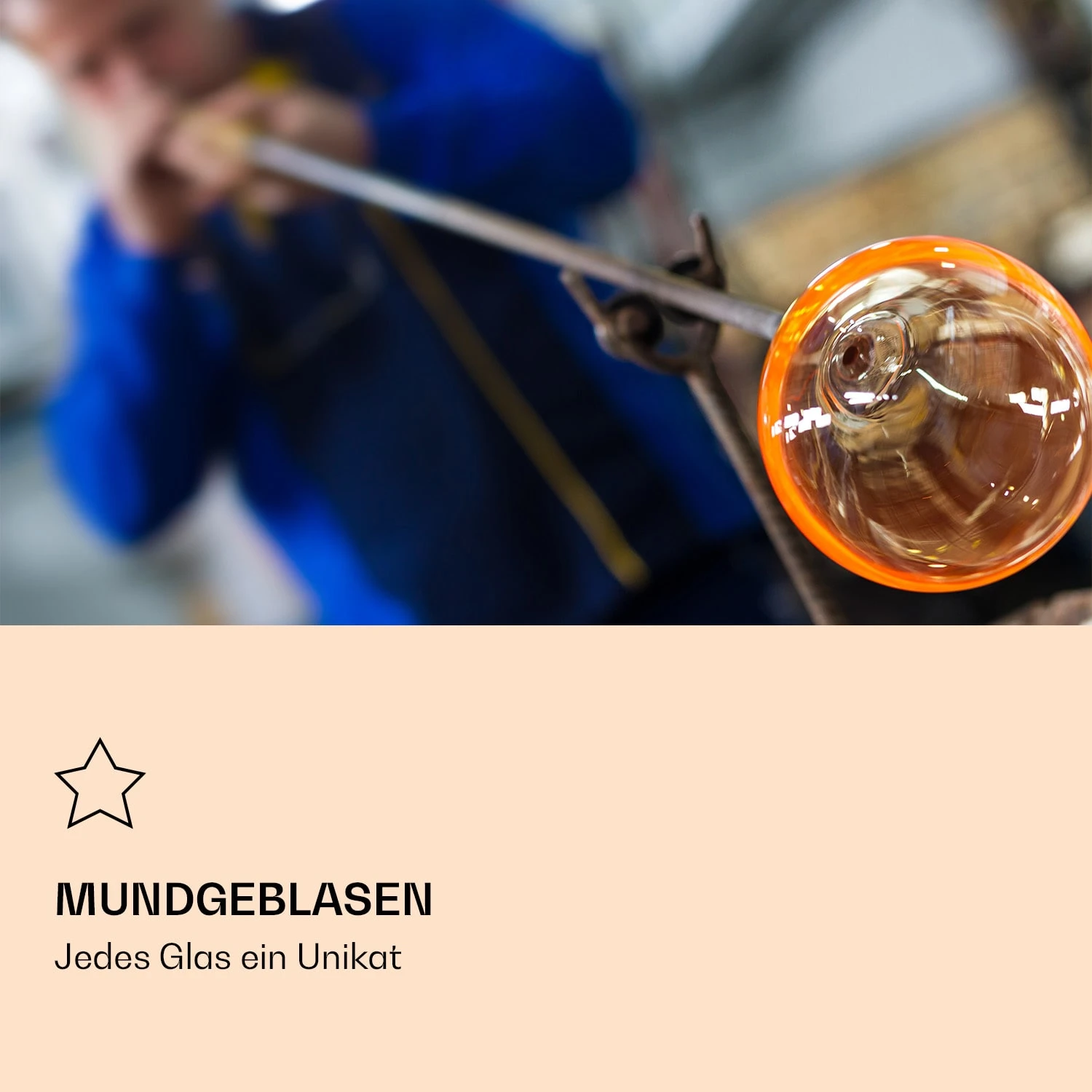 echter Handarbeit mundgeblasen und trumpft durch eine