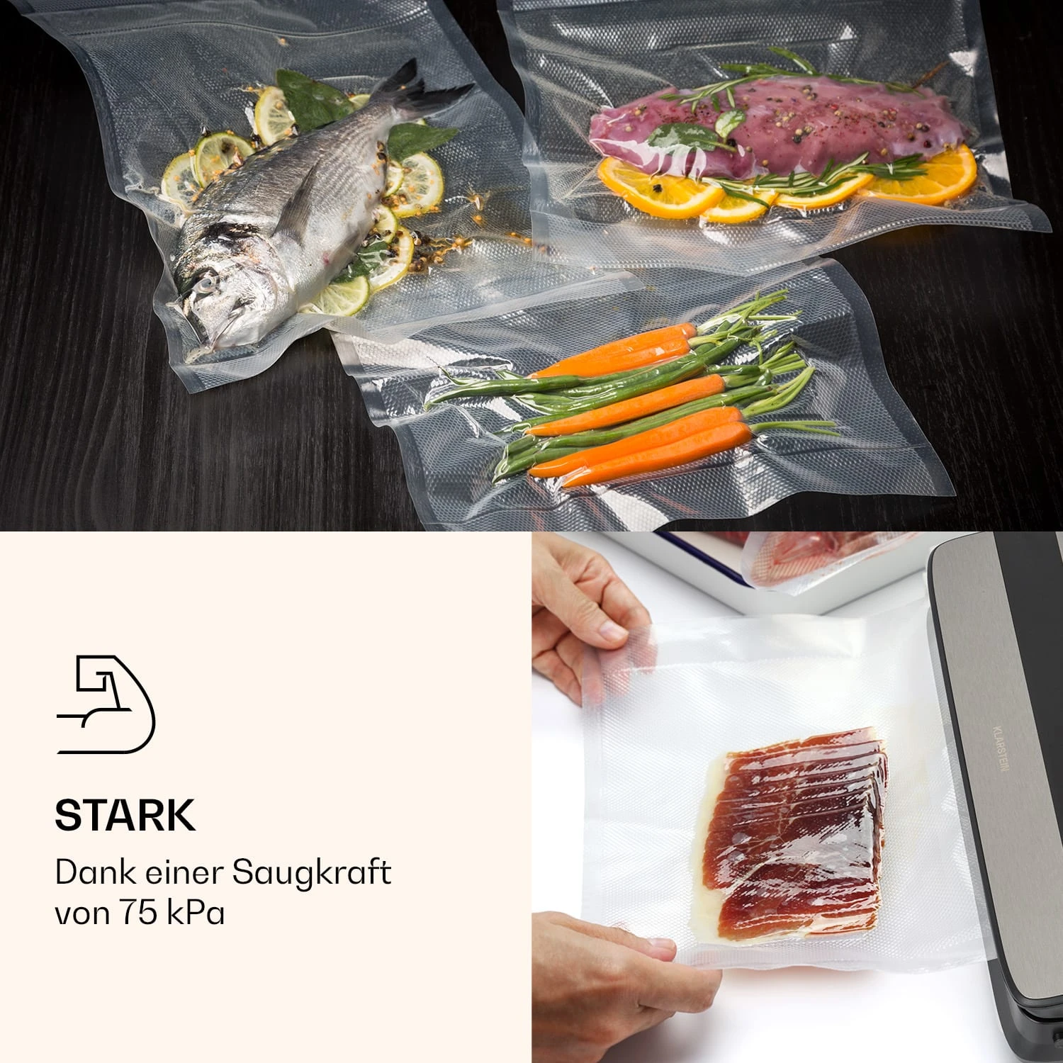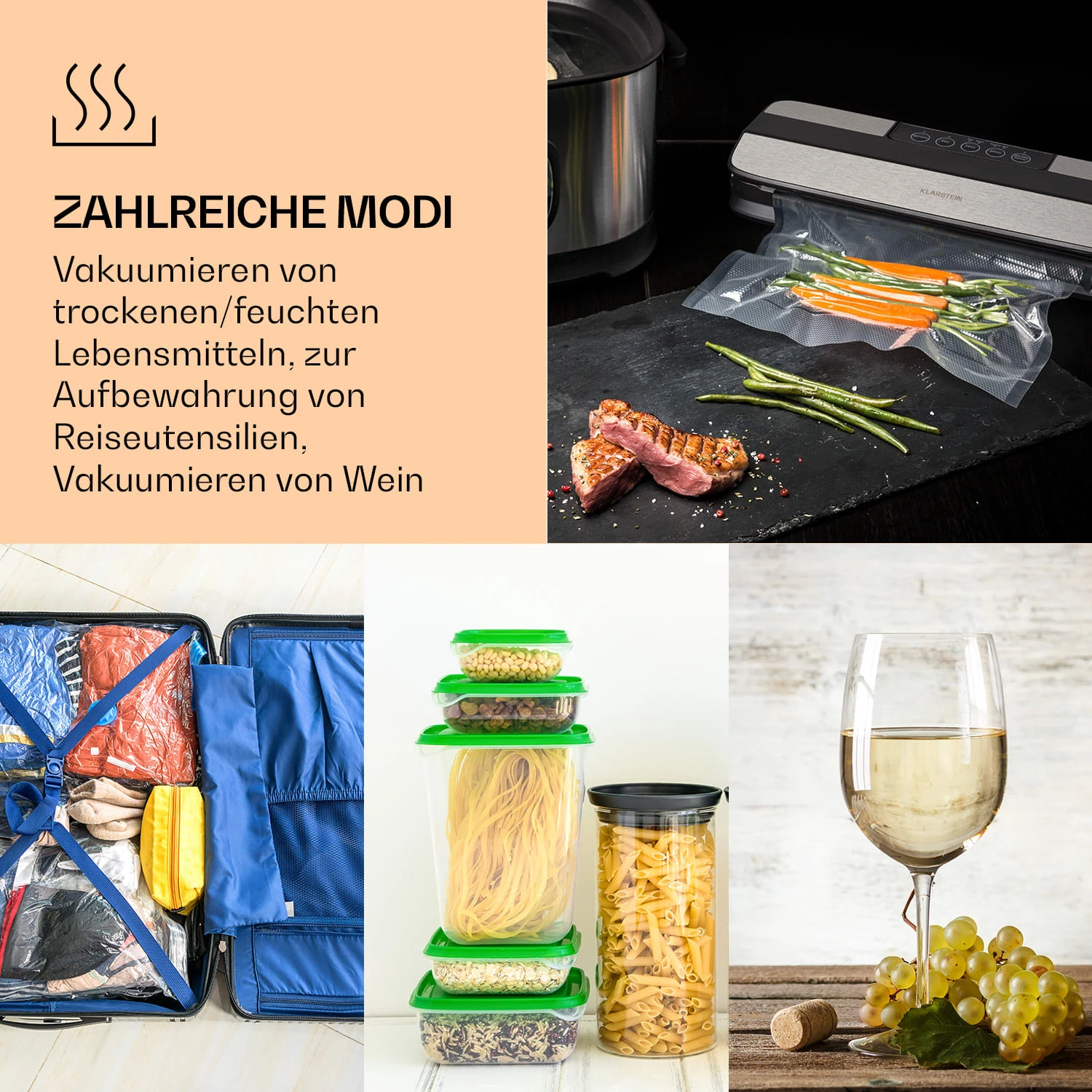 - Seal-Funktion: zum Versiegeln von Vakuumbeuteln