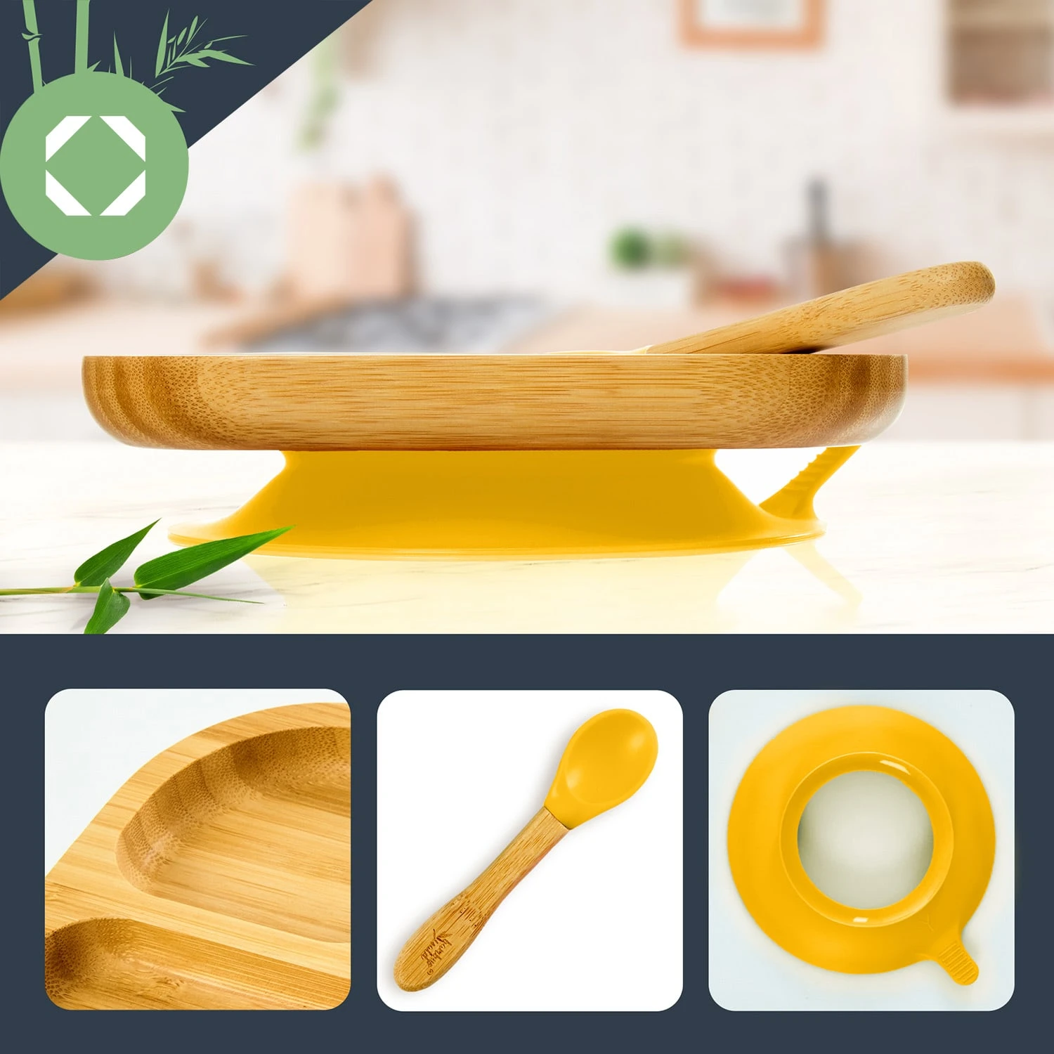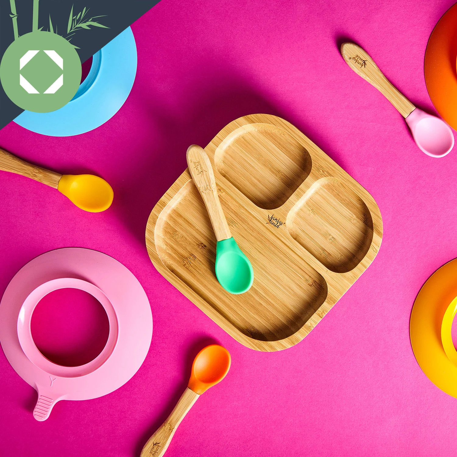 - Geschirrset für Kleinkinder mit Bambusteller und Löffel