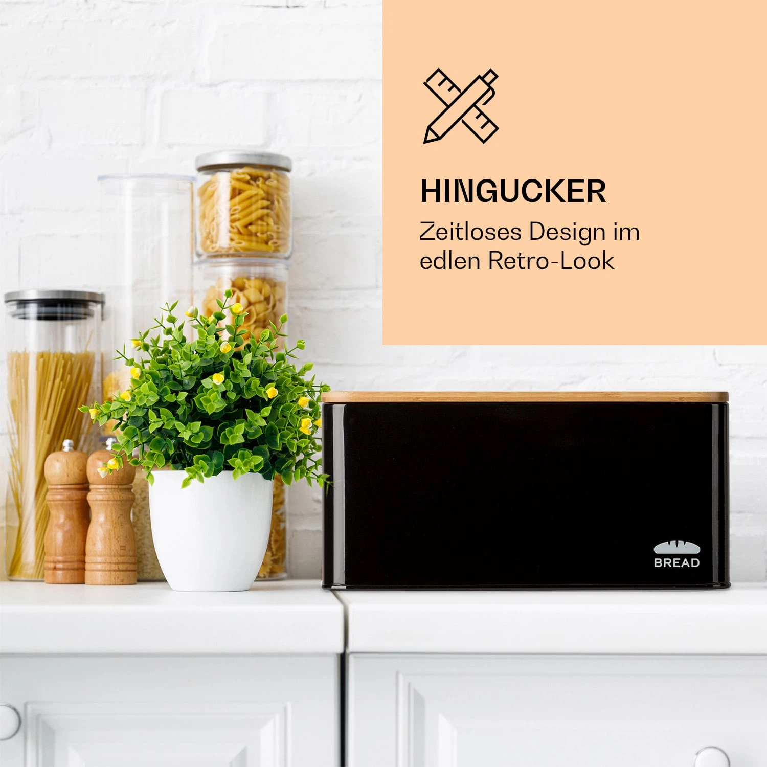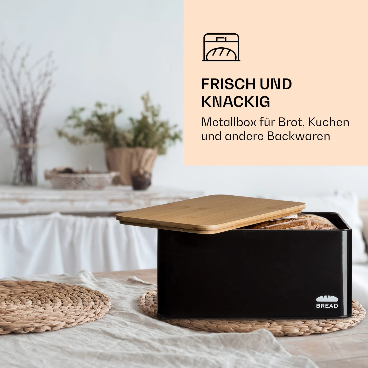 Oklahoma Brotkasten Metall 35,5×15,5×23 Cm Bambus-Deckel Schneidebrett