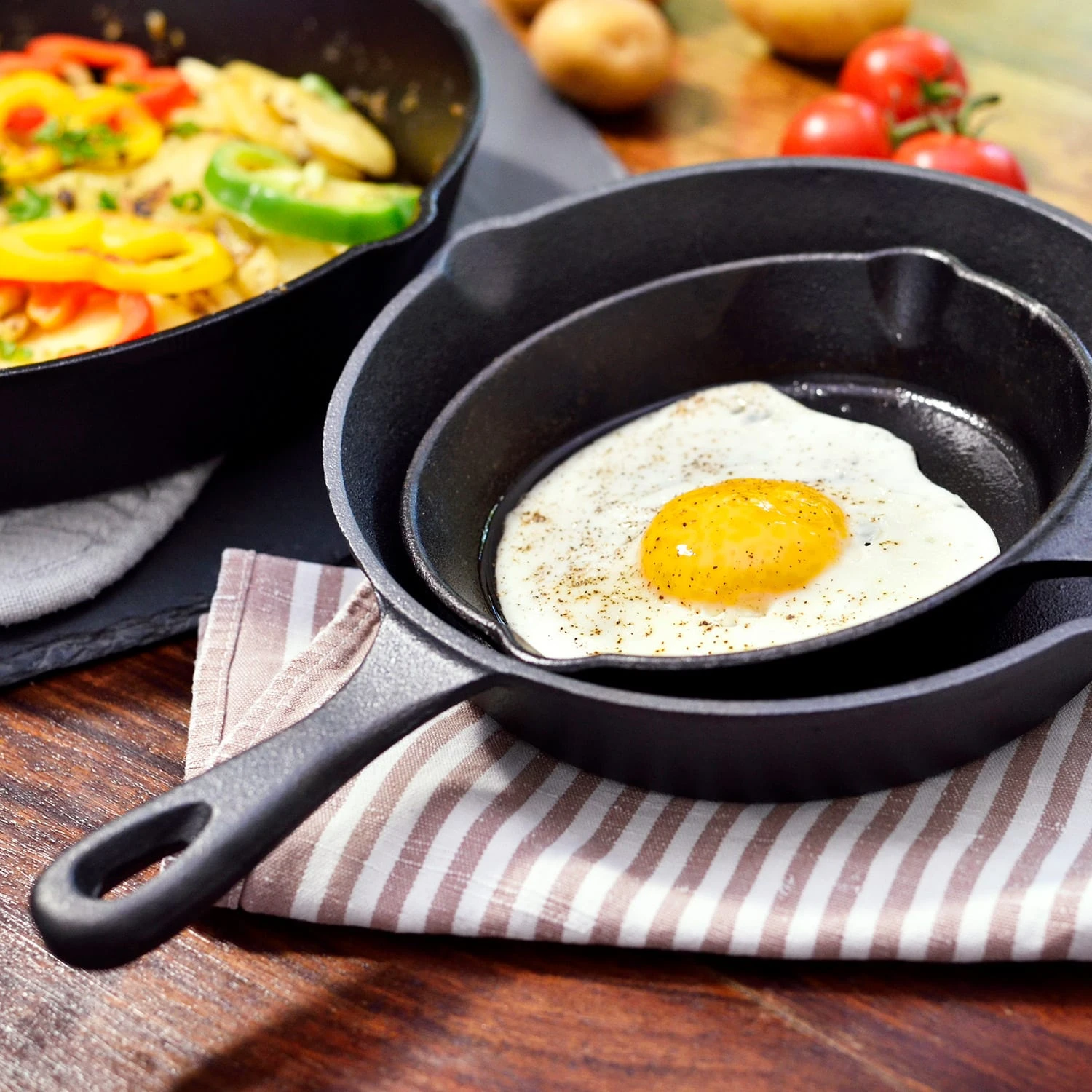 Parthenaise Bratpfannen 3er-Set 12/16/21cm Ø Gusseisen Rund Voreingebrannt