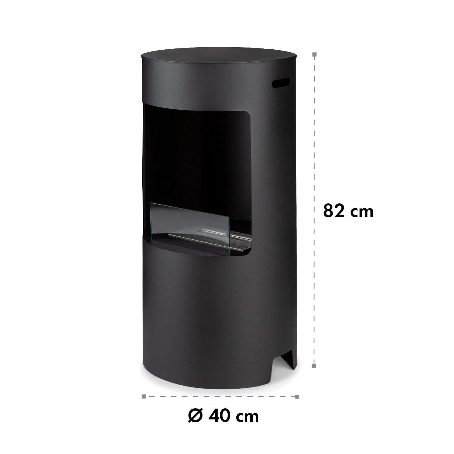 Die Bedienung des Kamins ist denkbar einfach: Ethanol in die Brennkammer einfüllen, anzünden, fertig! Dabei benötigt der Phantasma Niro Ethanol-Kamin keinen Abzug, so dass du ihn überall aufstellen kannst, wo ruß- und rauchloser Feuerzauber gefragt ist. Seine zylinderförmige Bauweise aus doppelwandigem Stahl sorgt dabei für festen Stand. Die Frontscheibe aus Sicherheitsglas schützt vor Kontakt mit den Flammen. Der Sicherheitsbrenner mit 1,5 Litern Volumen hat eine Brenndauer von bis zu 3,5 Stunden und sorgt für Wärme in Räumen bis 30 m². Die Flamme kann dank der Löschhilfe absolut unkompliziert gelöscht werden.