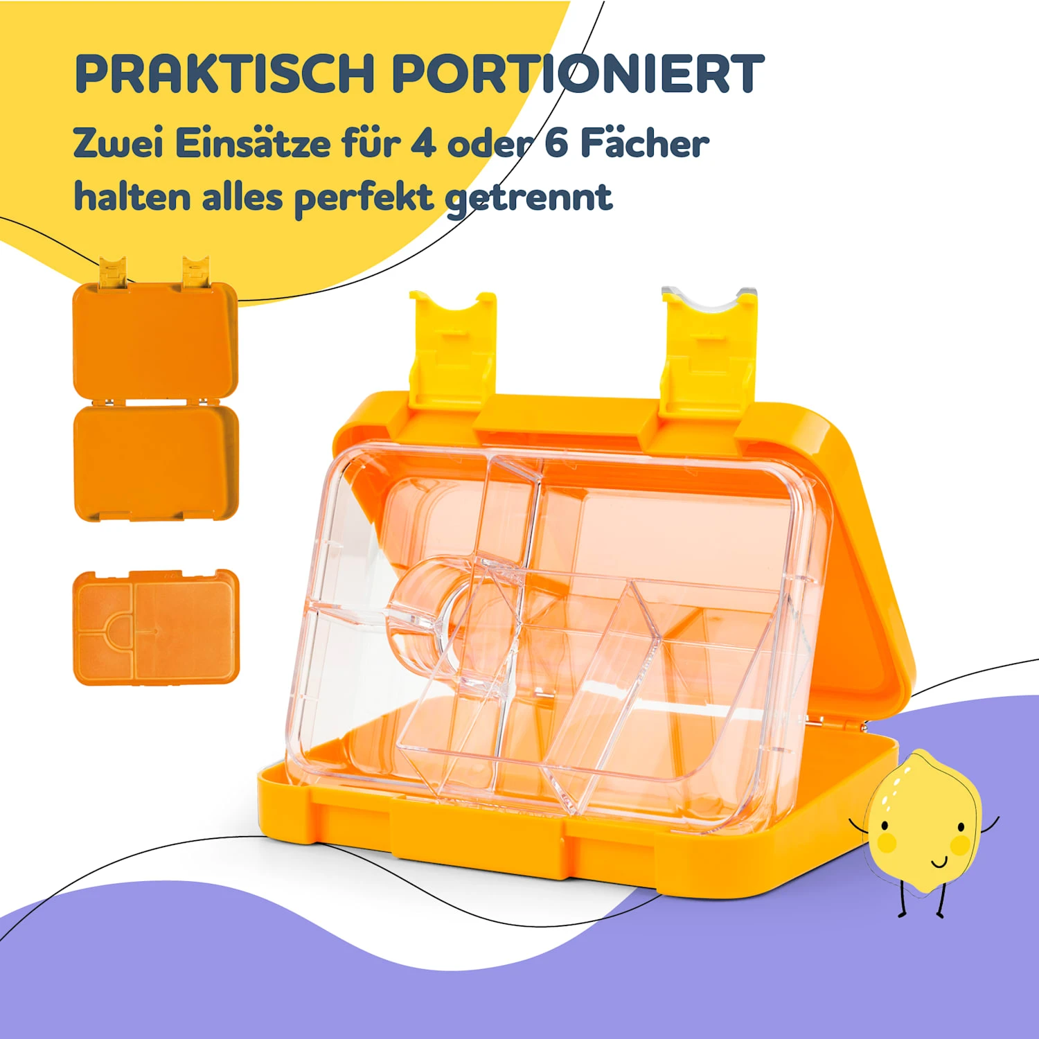 Praktisch und vielfältig im Kinderalltag, komfortabel am Abend: Durch die raffinierte Stecktechnik mit den herausnehmbaren Fächern lässt sich diese Lunchbox optimal reinigen. Eine gesunde Hygiene ist gewiss, denn die inneren Fächer können problemlos in die Spülmaschine gegeben werden. Da die äußere Box mit den Lebensmitteln nicht in Berührung kommt, kann sie einfach mit einem feuchten Tuch abgewischt werden. Durch die ideale Abdichtung kannst du die Vesperbox auch schon am Vorabend mit köstlichen Snacks befüllen.