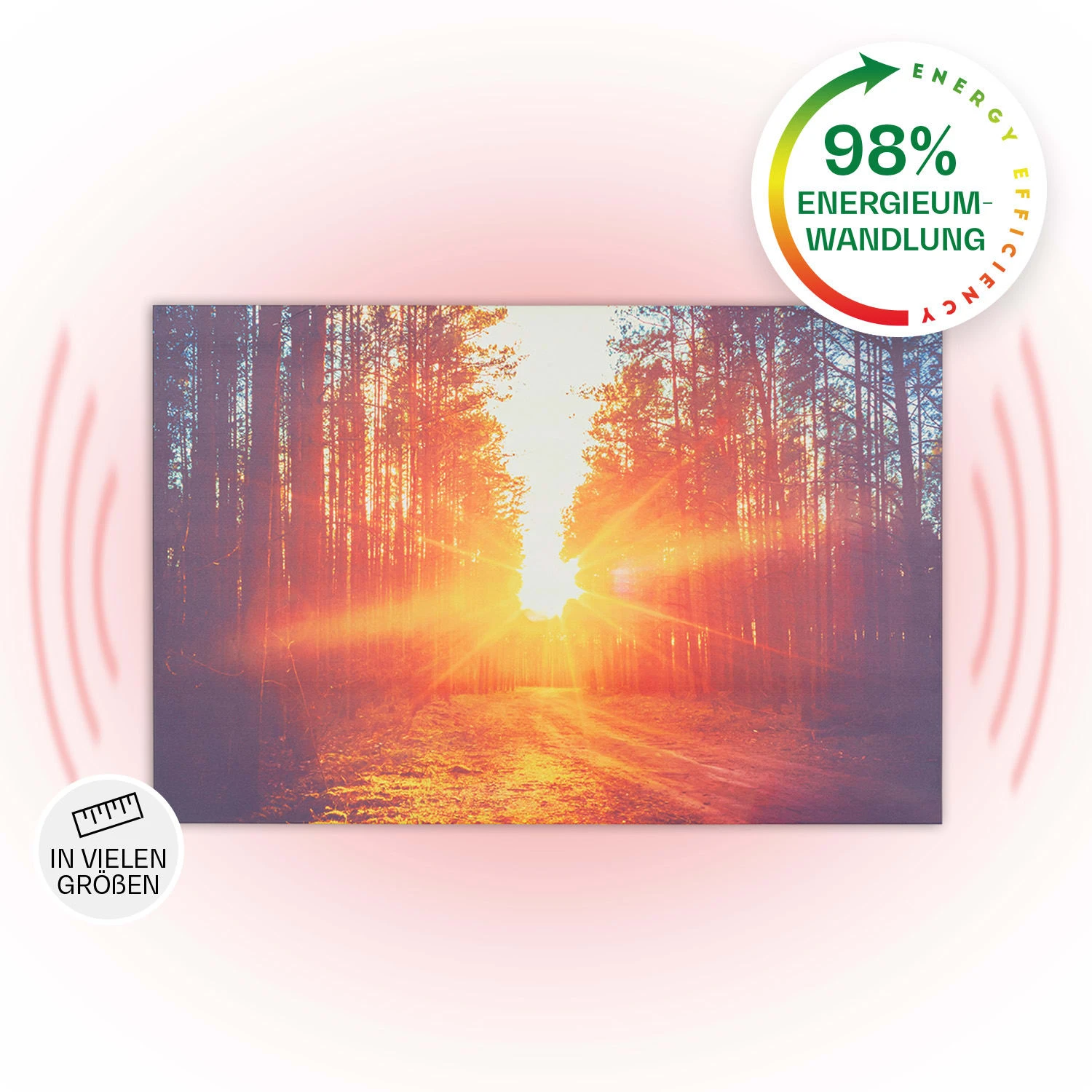 Mit smarter Technik zur Wohlfühlwärme: Die Klarstein Wonderwall Air Art Infinite Infrarot-Heizung mit Bild bringt hocheffizient angenehme Wärme in jeden Raum und umschmeichelt dich angenehm mit direkter Infrarotstrahlung. Superflach kannst du das Heizpanel wie ein Bild direkt an die Wand hängen und so Wärme und dekorativen Glanz zugleich in deine vier Wände bringen. Dabei ist deine neue Elektroheizung äußerst energieeffizient: Ganze 98 % der aufgenommenen Leistung werden in Wärmestrahlen ungewandelt. Die revolutionäre Heiztechnik wird indes durch Thermostat, Auto-Abschaltung, Wochentimer und Fernbedienung perfektioniert.