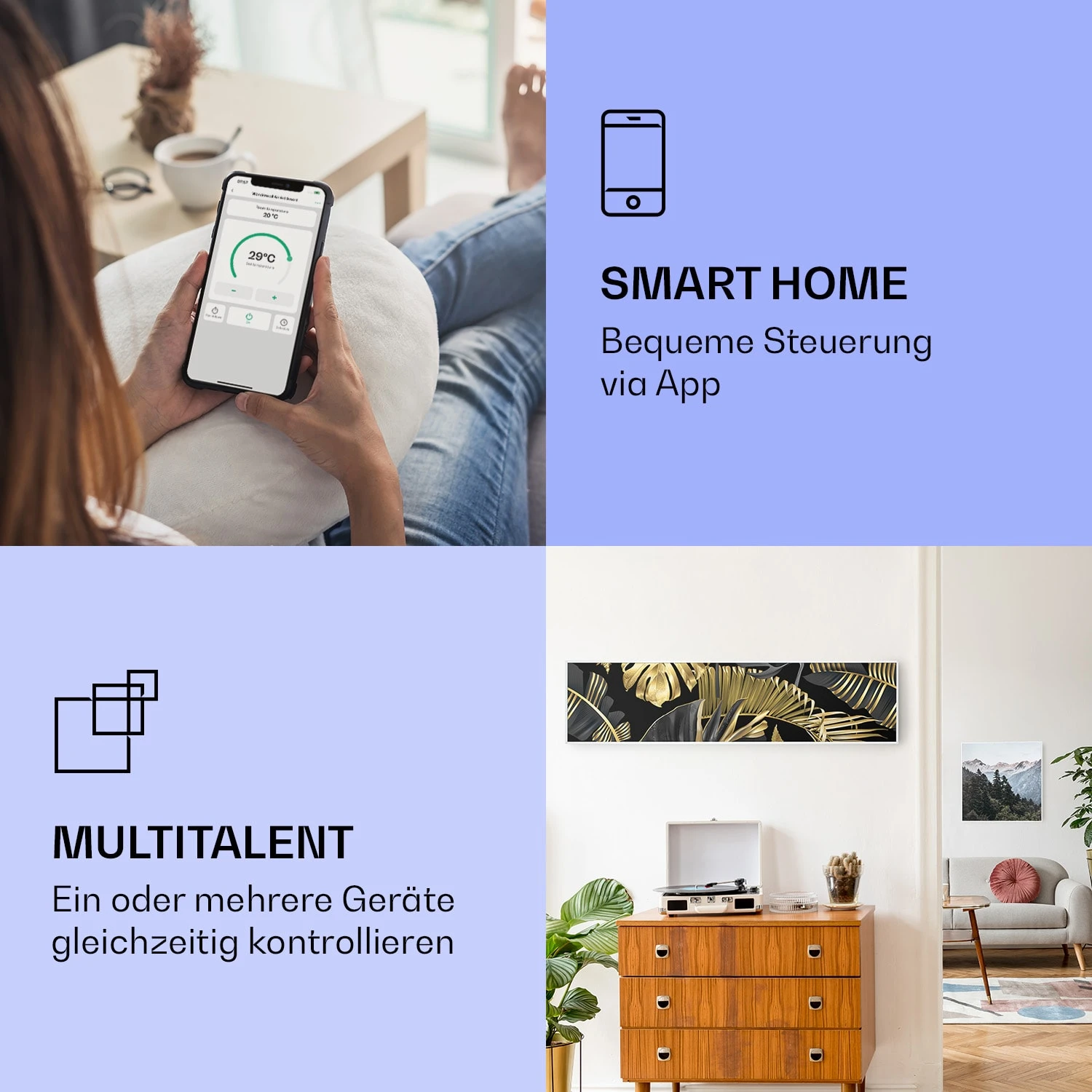 Wonderwall Air Art Smart Infrarotheizung Schwarze Blume 120x30cm 350W